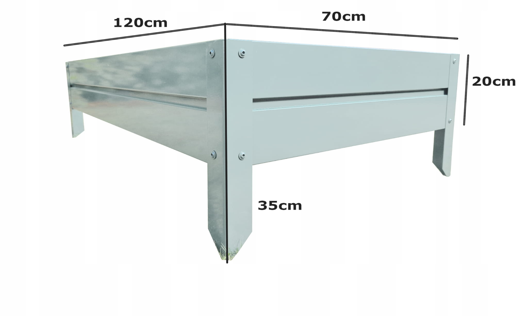 Niezwykle stabilna i mocna grządka wykonana z blachy ocynkowanej o grubości 1mm wycięta laserem i co istotne nie posiadająca ostrych krawędzi a dodatkowo została po procesie gięcia pomalowana proszkowo na kolor BIAŁY. Nogi grządki o grubości ścianki 1mm zostały ścięte aby łatwiej wbić ją w ziemie. Grządkę skręcamy za pomocą śrub nierdzewnych w kolorze grządki.