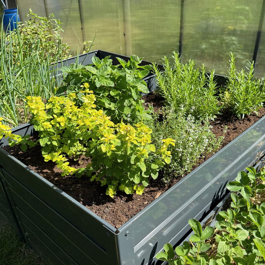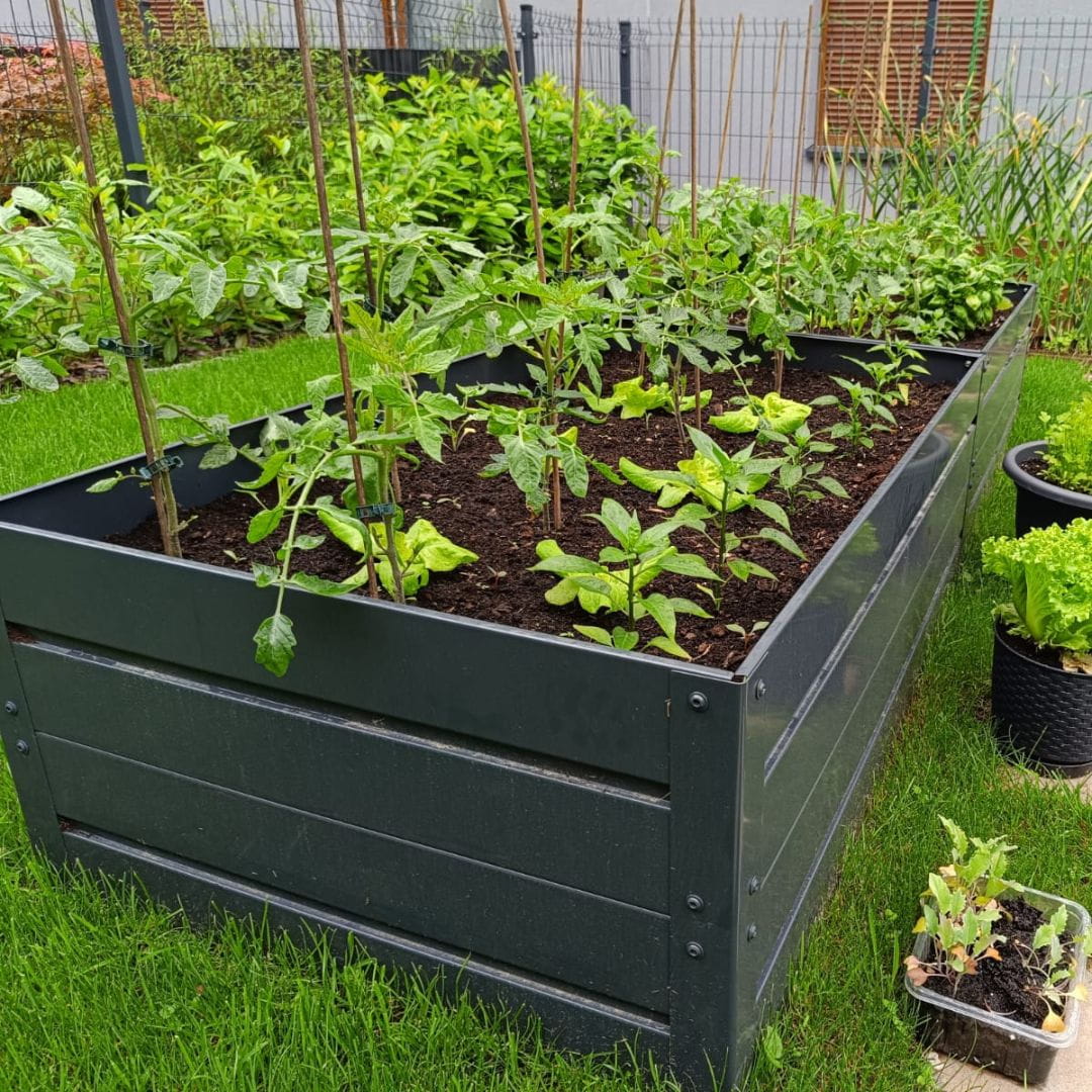 Górna krawędź grządki została zawinięta aby nie była ostra a wszystkie krawędzie zaoblone laserowo. Estetyczne przetłoczenie na środku dodaje grządce nowoczesnego wyglądu i dodatkowo usztywnia ją czyniąc bardzo mocną. Malowanie proszkowe obustronne od zewnątrz i wewnątrz zabezpiecza ją i dodaje estetycznego wyglądu. Zastosowanie śrub nierdzewnych daje pewność że w ziemi nie złapie ich korozja.