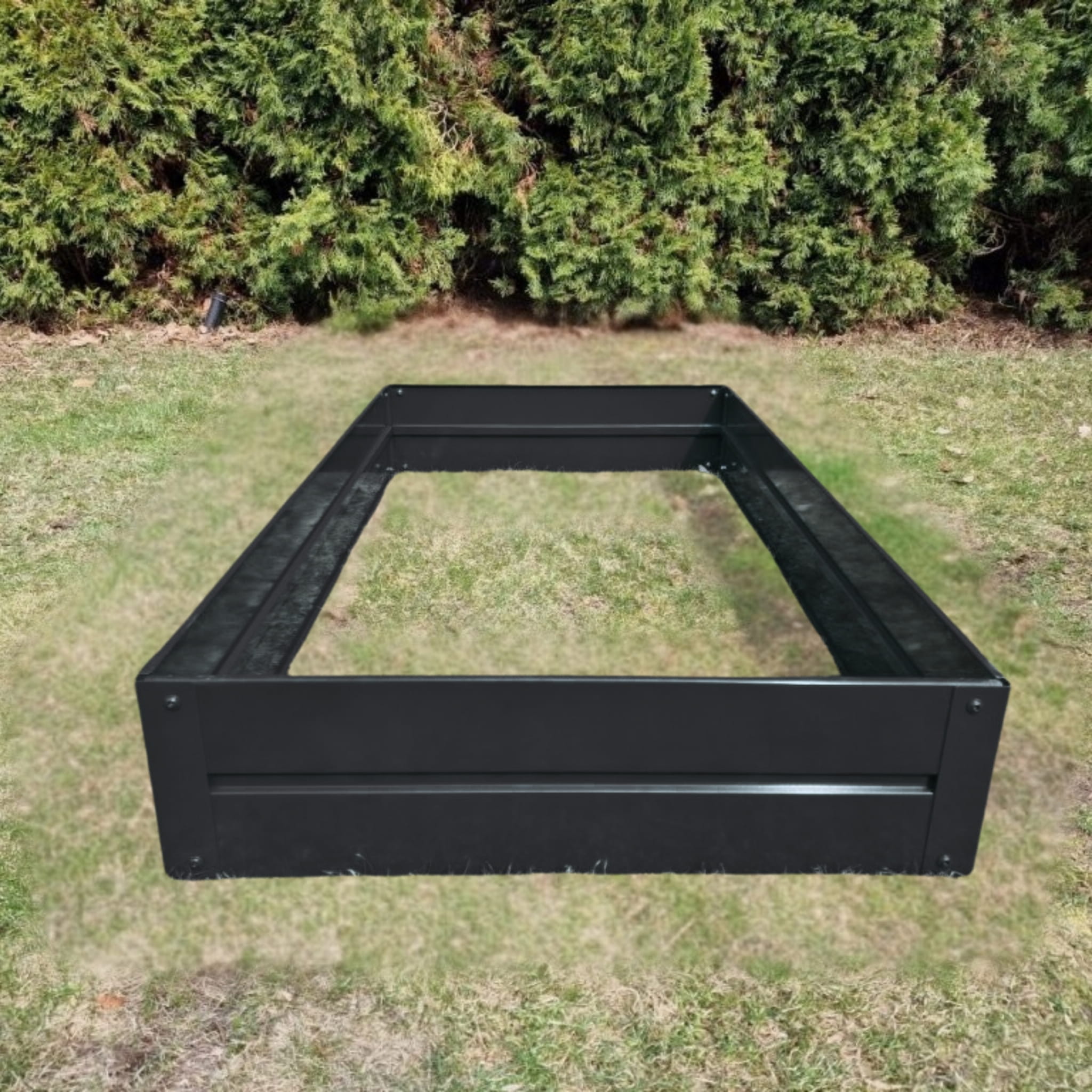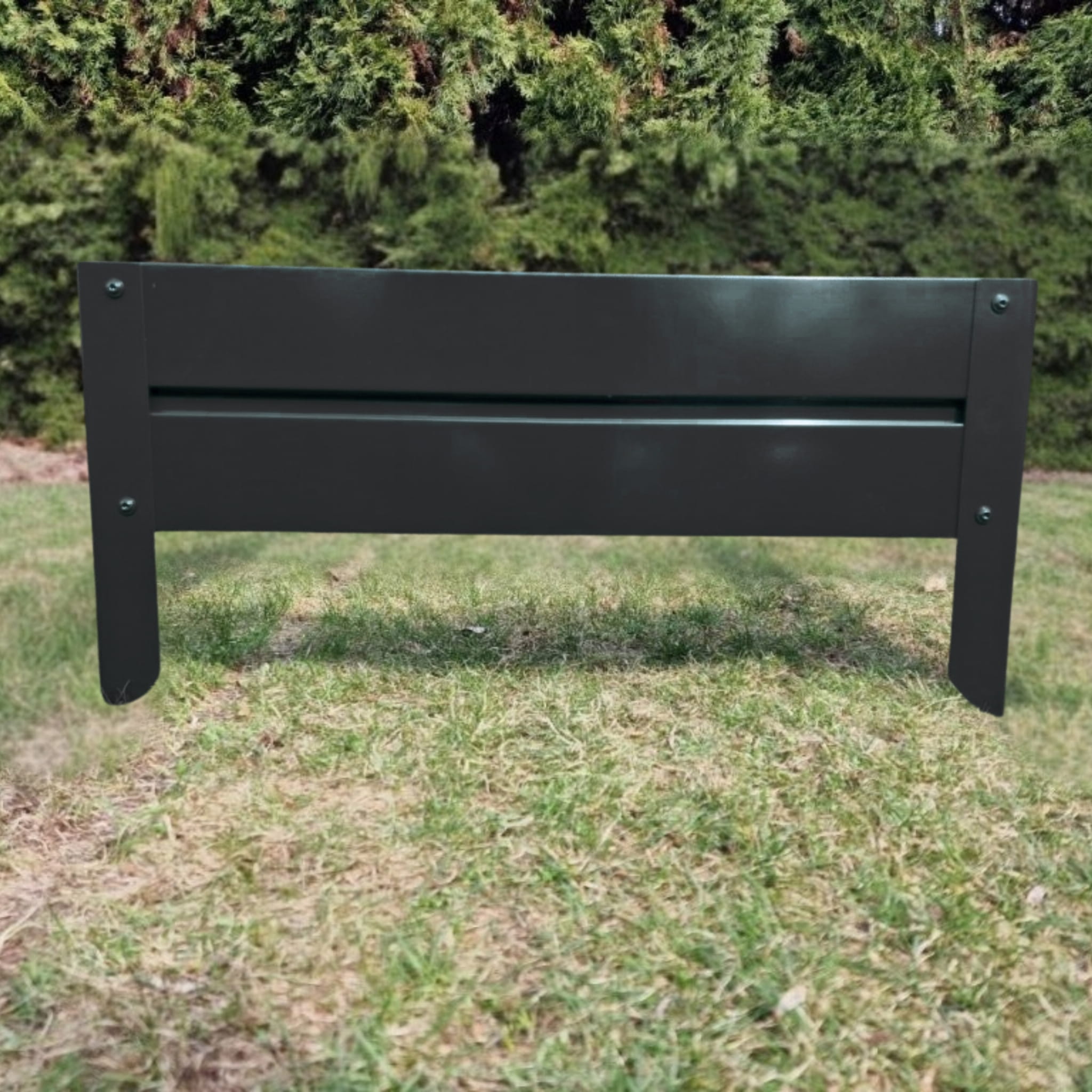 Niezwykle stabilna i mocna grządka wykonana z blachy ocynkowanej o grubości 1mm wycięta laserem i co istotne nie posiadająca ostrych krawędzi a dodatkowo została po procesie gięcia pomalowana proszkowo na kolor GRAFITOWY RAL 7016. Nogi grządki o grubości ścianki 1mm zostały ścięte aby łatwiej wbić ją w ziemie. Grządkę skręcamy za pomocą śrub nierdzewnych w kolorze grządki.